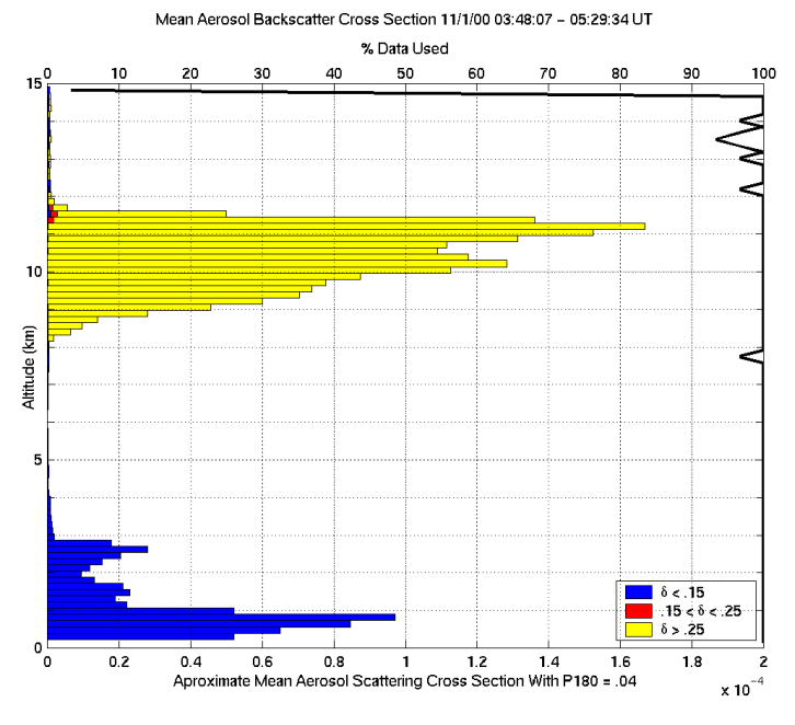 Plot of mean aerosol backscatter cross-section vs. altitude for data
