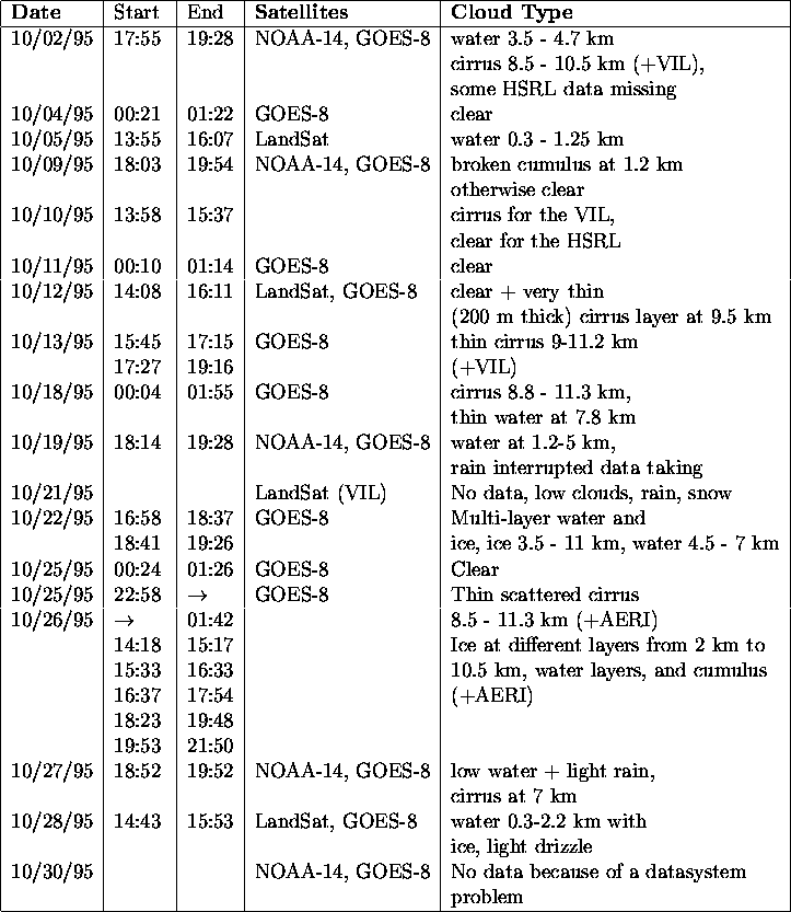 HSRL Operations 10/2/95 -10/30/95