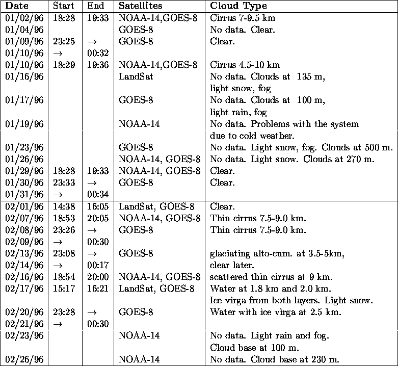 HSRL Operations 01/01/96 - 02/26/96