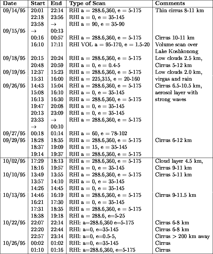 THE UNIVERSITY OF WISCONSIN VOLUME IMAGING LIDAR OPERATIONS DURING FALL -95 EXPERIMENT
