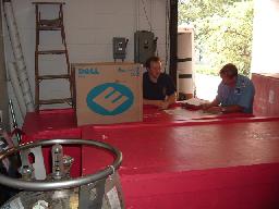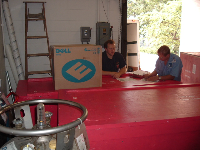 Jim Hedrick(left) readies air freight paper work needed to ship the AHSRL