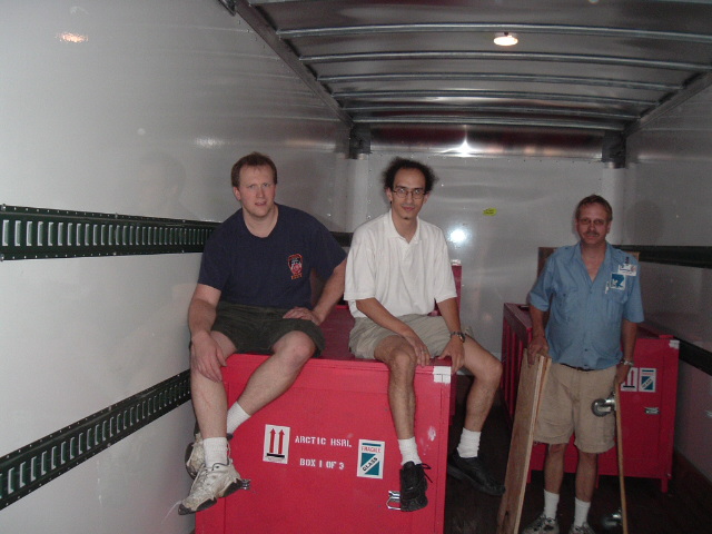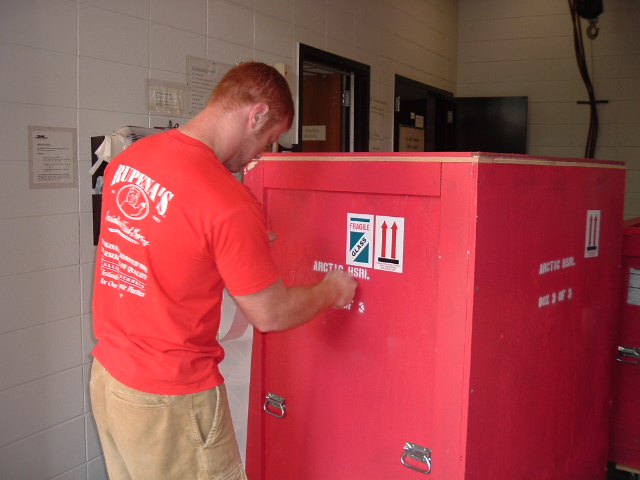 Lots of "fragile" and "this side up" stickers were applied to the AHSRL crates. (click on image to enlarge)