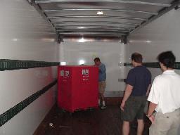 All three crates are aboard the truck. Jim Hedrick (left) and Joe Garcia(right)