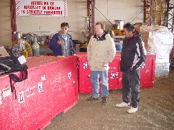 Lidar arrives in Barrow. Walter Brower, Jim Hedrick and Gilbert inspect
